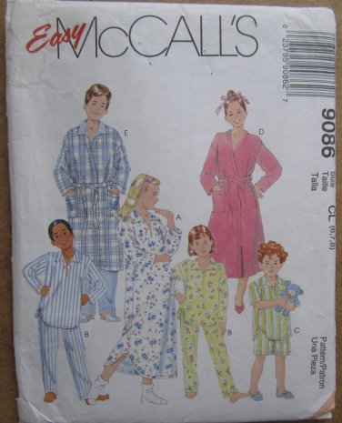 McCalls 9086 Sewing Pattern for Kids Pajamas Robe Nightown Boys Girls Size 6 7 8 Uncut