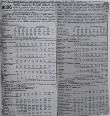 McCalls Sewing Pattern 9086